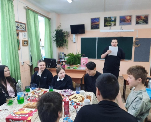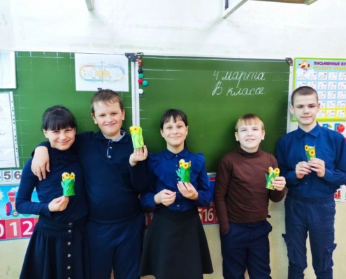 В преддверии весеннего праздника 8 Марта обучающиеся 8А класса поздравили учителей, а мальчики поздравили девочек класса.