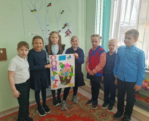Ученики 2 Б класса приняли участие в конкурсе плакатов к 8 Марта