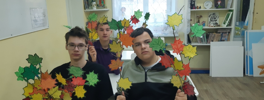На уроках трудового обучения учащиеся 10а класса вносят свой вклад в подготовку к традиционному празднику «Золотая осень» которым занимается Подолян Е.М. для учащихся младшего звена. Ребята 10 а изготавливают атрибуты праздника -это осенние листья, которые вырезают, красят и ламинируют, с этими листиками учащиеся младшего звена будут выступать. Такую шефскую помощь старшеклассники под руководством учителя Смирновой Л.В. выполняют ответственно.