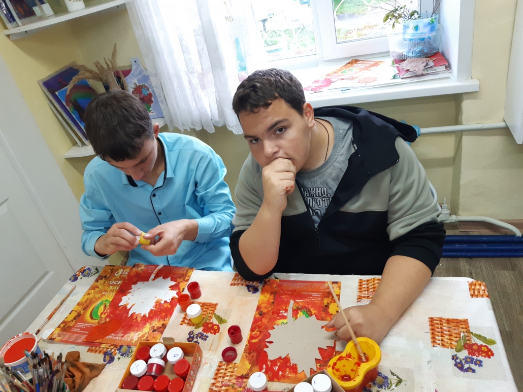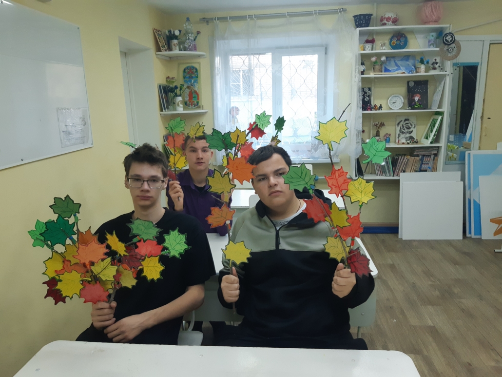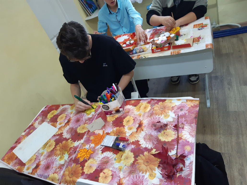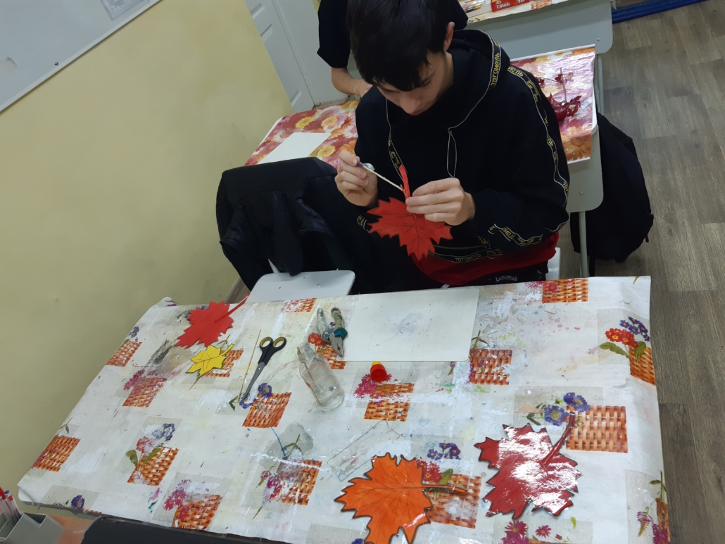 На уроках трудового обучения учащиеся 10а класса вносят свой вклад в подготовку к традиционному празднику «Золотая осень» которым занимается Подолян Е.М. для учащихся младшего звена. Ребята 10 а изготавливают атрибуты праздника -это осенние листья, которые вырезают, красят и ламинируют, с этими листиками учащиеся младшего звена будут выступать. Такую шефскую помощь старшеклассники под руководством учителя Смирновой Л.В. выполняют ответственно.