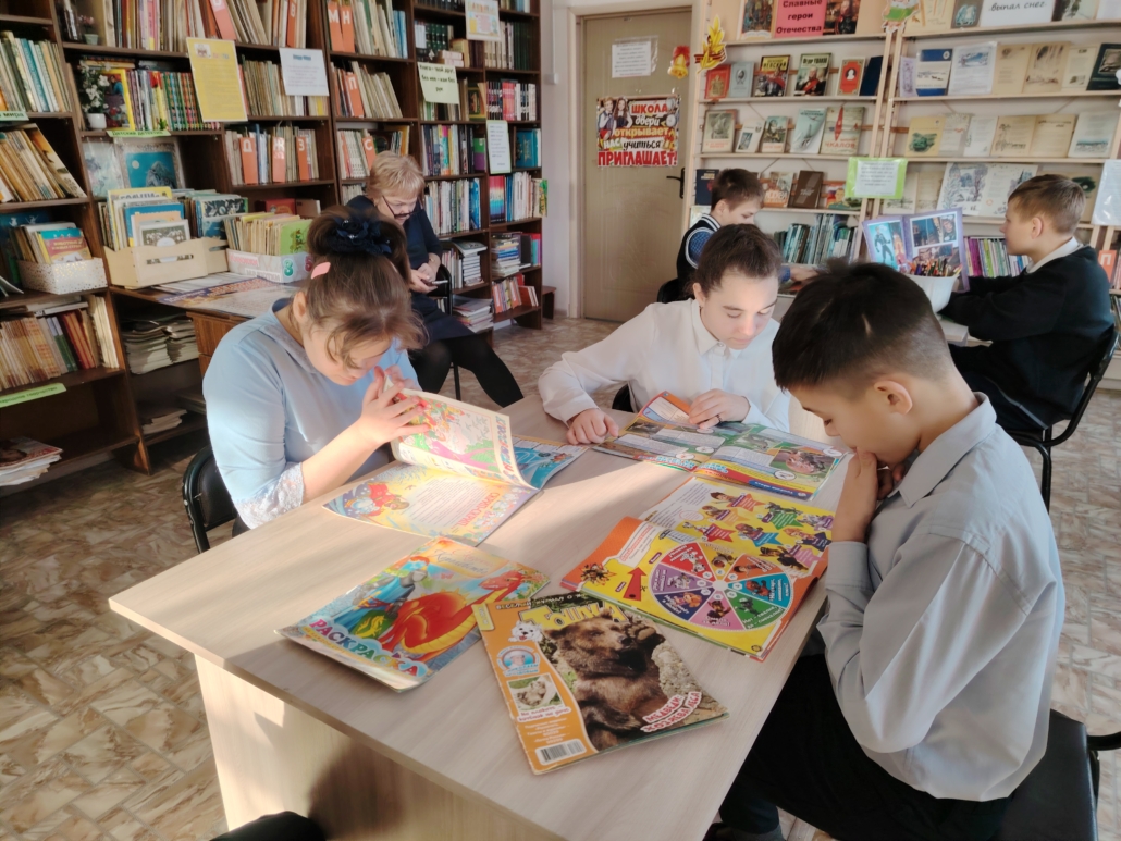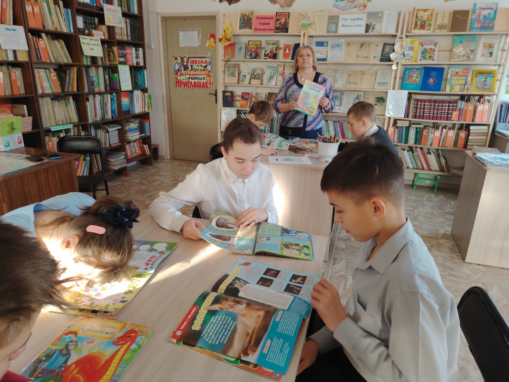 В библиотеке, в рамках «Литературной гостиной», был проведен обзор детских периодических изданий, в котором приняли участие учащиеся 8 Б класса. Педагог- библиотекарь показала много красочых интересных детских журналов и рассказала о них. Затем ребятам было дано творческое задание: найти в журналах информацию о тех домашних питомцам, которые живут у них дома. Дети с большим интересом просматривали журналы, а затем рассказывали о своих любимых кошечках,собачках, попугайчиках и акваиумных рыбках. Было интересно, весело и познавательно.