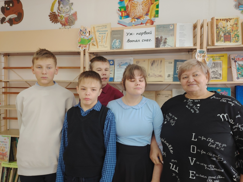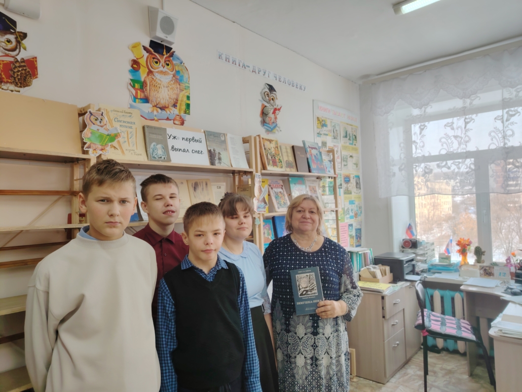 В первый день зимы в библиотеке состоялась Литературная гостиная, посвященная началу календарной зимы на которой ученики 8Б класса читали сами и слушали стихи русских поэтов о зиме А.С. Пушкина, Ф.И. Тютчева, А.А. Фета, И.З. Сурикова, С.А. Есенина. Ребята исполнили песни о зиме вместе с героями мультфильмов, посмотрели мультфильм «Дед Мороз и лето». Было весело и интересно. Подготовили и провели мероприятие педагог – библиотекарь С.А. Туровец и педагог Татьяна Дмитриевна Кожемяко.