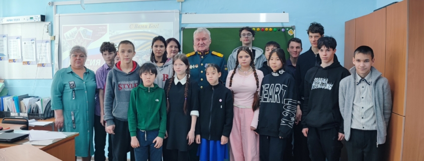 13 февраля в преддверии «Дня памяти о россиянах, исполнявших служебный долг за пределами Отечества», прошла встреча обучающихся старших классов с Шмелевым А.А., участником СВО. Участники вспоминали события связанные с Авганской и Чеченской войной. Александр Анатольевич рассказал о героизме ребят находящихся на боевых позициях в Украине, о буднях солдат, ценности жизни. Входе диалога ребята получили ответы на интересующие их вопросы. В завершении встречи минутой молчания почтили память героев Отечества и поздравили Александра Анатольевича с приближающимся праздником «23 Февраля».