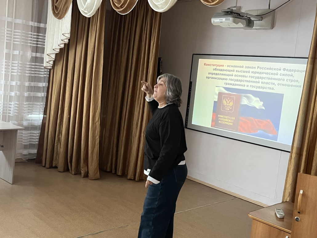 Прошли утренние классные часы на тему «Почему важно соблюдать конституцию», была организована информационная выставка «Что я знаю о конституции РФ». В актовом зале прошёл просмотр информативного фильма «12 декабря-День Конституции РФ». В мероприятиях были задействованы учащиеся 3-11 классов,а так же классные руководители ,социальный педагог и педагог-психолог.