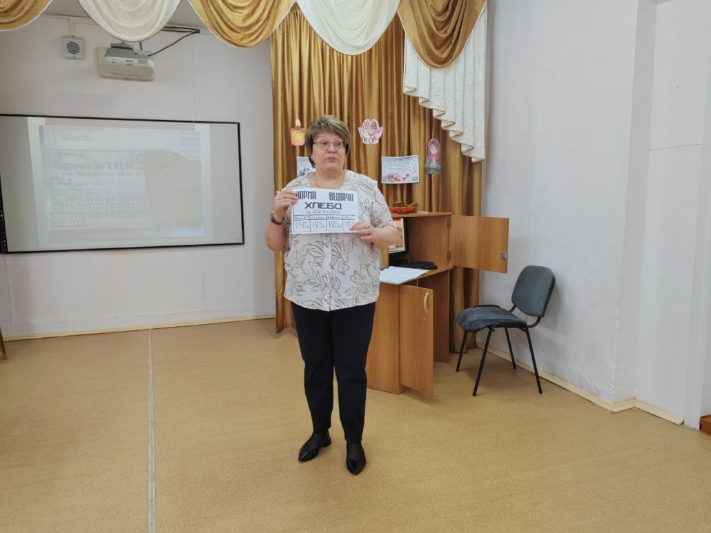 Дети слушали о подвиге жителей Ленинграда, узнали о норме хлеба в голодное время — работающему 250гр. неработающим — 125гр.