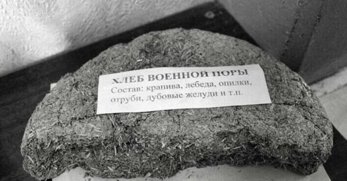 Прочитали состав блокадного хлеба: жмых, целлюлоза, желуди, коревая мука.