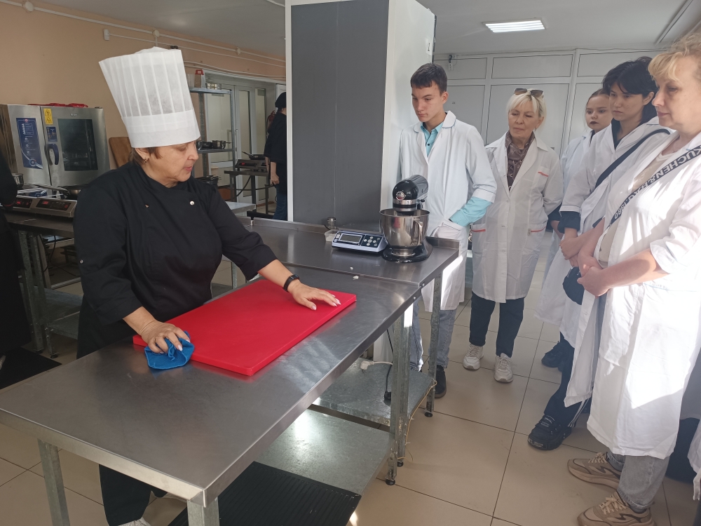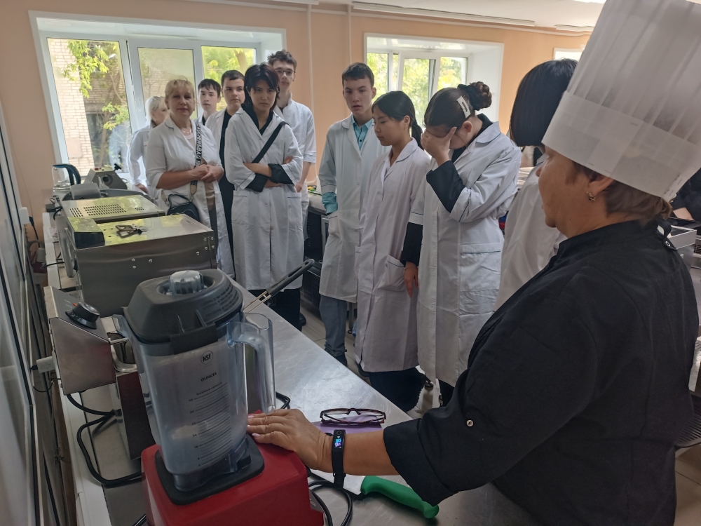 24 сентября 2025 года обучающиеся 10 а класса, совместно с педагогами трудового обучения Ковылиной Е.К., Смирновой Л.В., Мельничук А.В. посетили экскурсию в АПТ г. Амурска, где мастер производственного обучения познакомил детей с рабочим местом повара- кондитера. Ребята познакомились с различным современным оборудованием, инвентарем, инструментами, формой, необходимым в работе повара- кондитера. Детям были представлены три мини- лаборатории, где учащиеся техникума показали и рассказали как они готовили блюдо, а ребята с интересом следили за этим процессом. Благодарим мастера техникума Овчинову Марину Васильевну и в целом коллектив АПТ за сотрудничество, а также Адайкину Н.В. за организацию экскурсии.