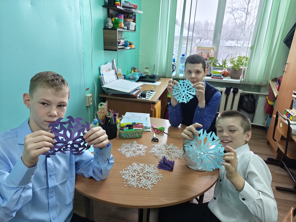 Создание снежинок своими руками — это магия, доступная каждому. С обучающимися 2А, 2Б, 6В классов мы учились вырезать снежинки. Работа эта сложная, но увлекательная. Наши снежинки получились из простого квадрата. Ни одна не будет похожа на другую! Снежинки выглядят невероятно эффектно и парят в воздухе как настоящие. Отлично снежинки смотрятся на окнах. Снежинки — это тихая поэзия зимы, её дыхание и её украшение. Они летят, чтобы подарить красоту и ощущение чуда.