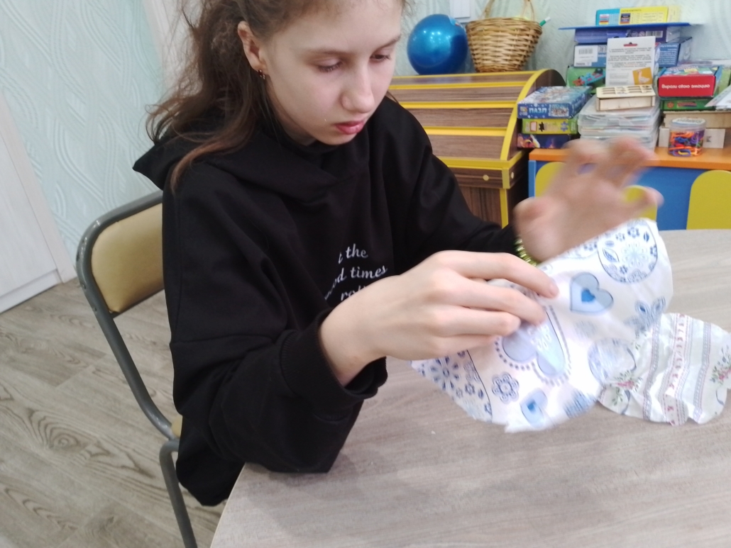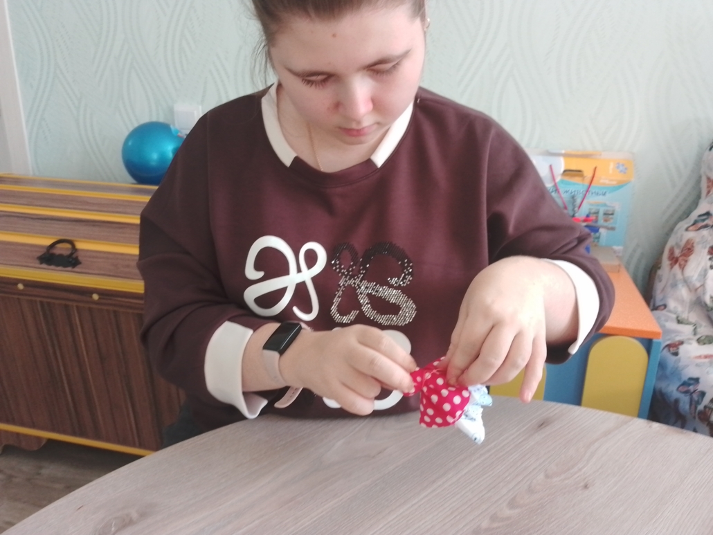 6 февраля прошли индивидуальные занятия по предметно-практическим действиям по работе с тканью.